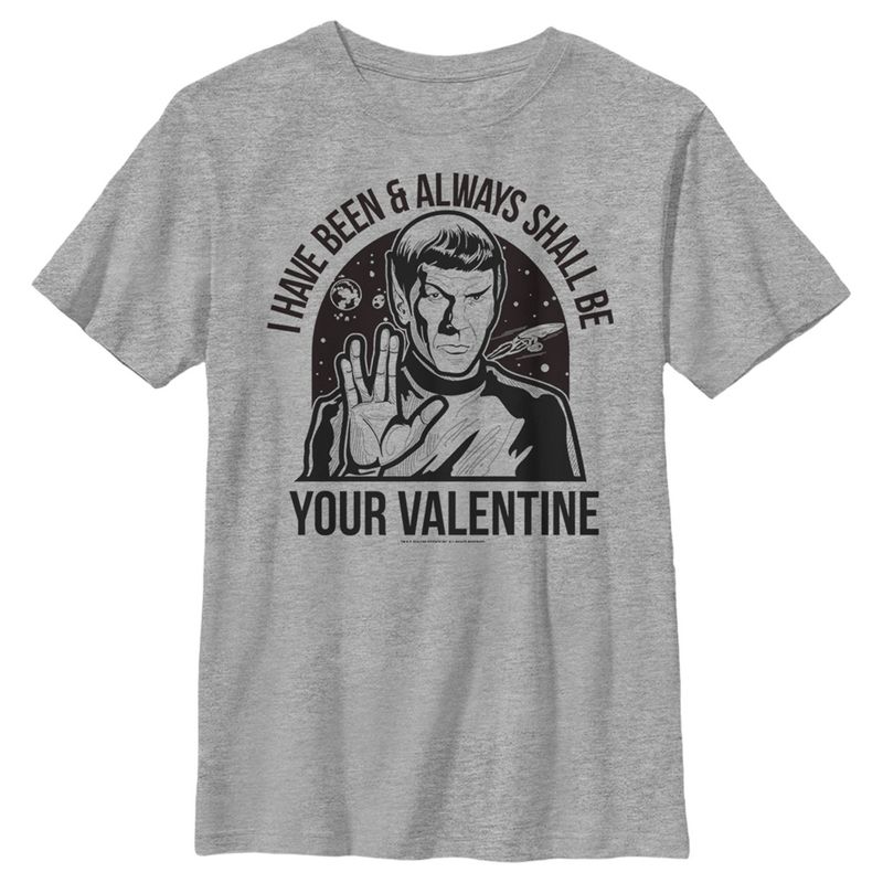 - تباهَ بملابسك الأنيقة مع هذا القميص الجديد للأولاد بمناسبة عيد الحب، وهو مثالي لجميع المناسبات! مُزيّن بشخصياتك المفضلة مثل سبوك.