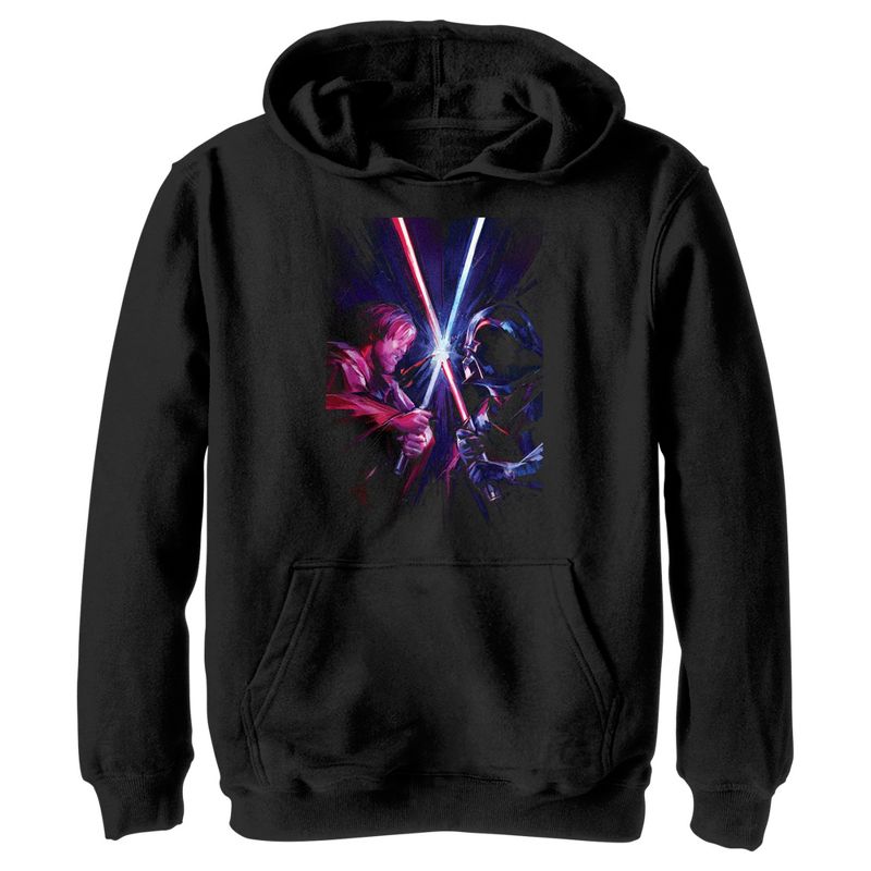 - تألق بملابسك مع هذا القميص المطبوع الأنيق للأولاد، مثالي لجميع المناسبات! يتميز بمبارزة سيوف ضوئية ملحمية بين أوبي وان كينوبي ودارث فيدر!