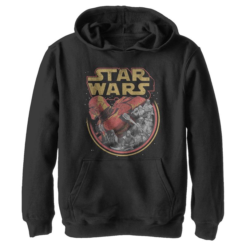 - استمتع بالراحة والأناقة في نفس الوقت مع هذا الهودي الخفيف الوزن ذو الرسومات الفريدة للأولاد من Star Wars: The Rise of Skywalker.