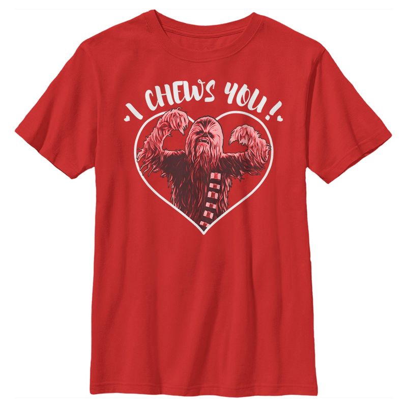 توقف عن البحث عن الحب في أماكن ألديران في عيد الحب هذا! أضف لمسة من الأناقة الاستثنائية إلى خزانة ملابسك مع هذا التيشيرت الرائع والمرخص رسميًا من حرب النجوم لعيد الحب، والذي يحمل عبارة "أمضغك" للأولاد! يتميز هذا التصميم الرائع بدمية "تشوي" قابلة للعناق داخل قلب مكتوب عليه "أمضغك"، مثالي لحبيبك في عيد الحب الذي يعشق كل ما يتعلق بحرب النجوم!