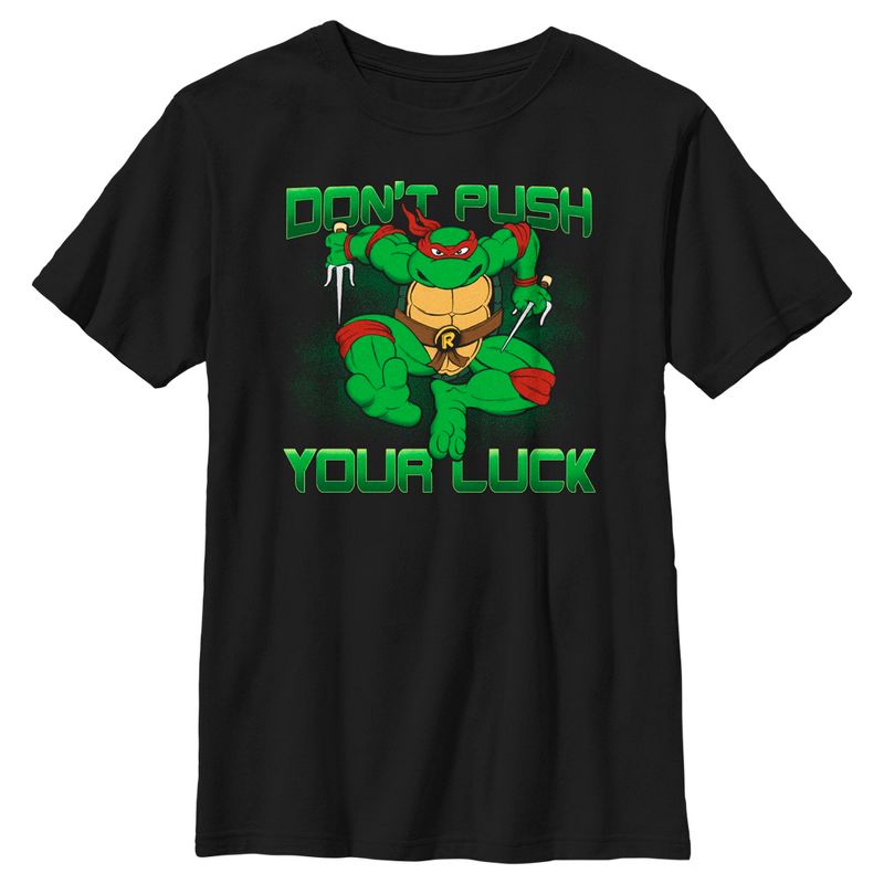 يا رفاق! حان وقت الاحتفال بعيد القديس باتريك مع هذا التيشيرت الرائع للأولاد، والمُزين برسومات سلاحف النينجا المتحولة المراهقة، والمُزين بنقشة مايكل أنجلو الشامروك! يُظهر هذا التصميم رافائيل وهو يقفز بسلاحيه السايَّين، مع عبارة "لا تُرهق نفسك". اطلبوا بيتزا واستمتعوا مع أصدقائكم بهذا التيشيرت الجديد الرائع بمناسبة عيد القديس باتريك!