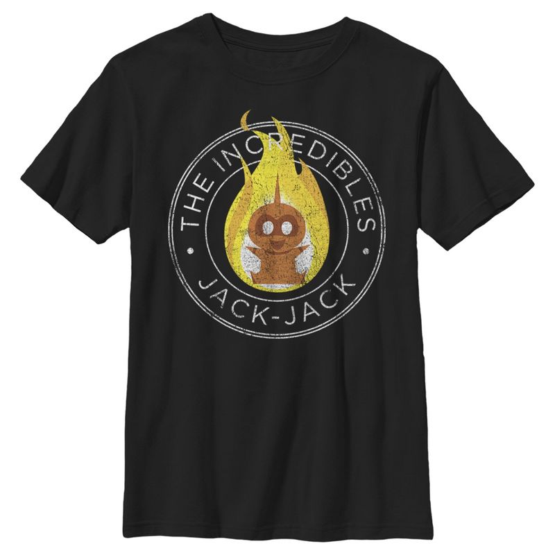 ستجد صعوبة في إيجاد جليسة أطفال لقميص "الخارقون ٢" للأولاد بشعار جاك جاك العتيق! يظهر بار الأصغر محاطًا بلهبٍ محترق، ويحيط به شعار "الخارقون جاك جاك" على هذا القميص الرائع.
