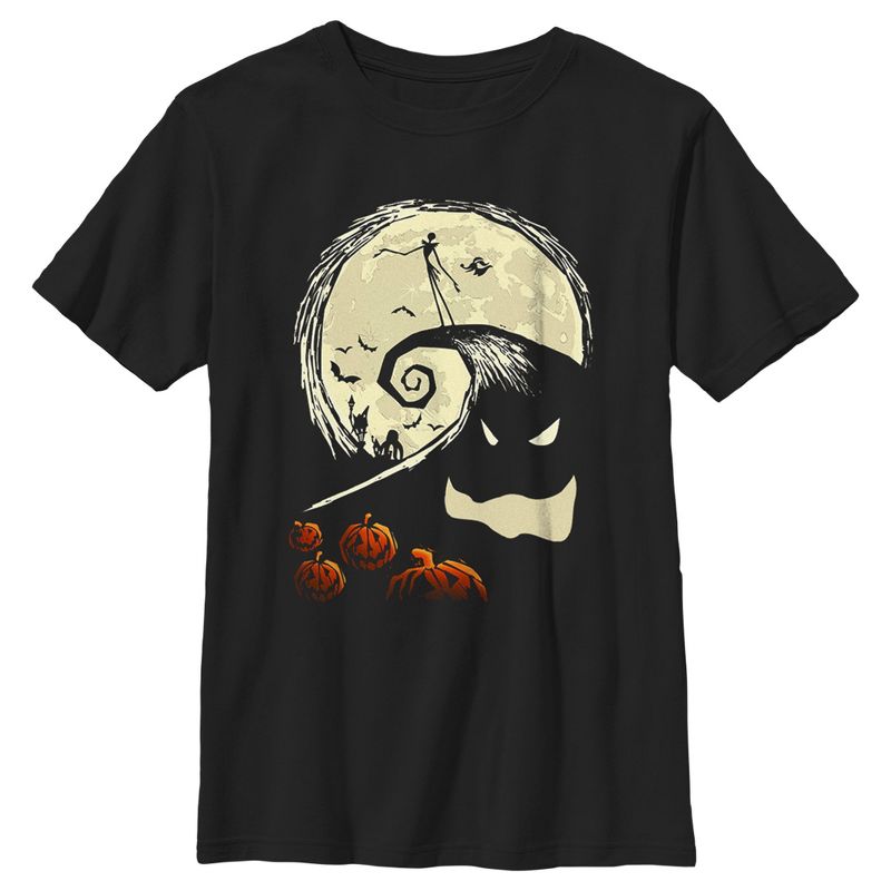 - تباهَ بجمالك مع هذا التيشيرت الجديد الأنيق للأولاد، مثالي لكل مناسبة! يُصوّر جاك واقفًا على قمة تل حلزوني على شكل أوغي بوغي، وزيرو يطير مع الخفافيش وفوانيس القرع، والقمر يشرق في الخلفية.