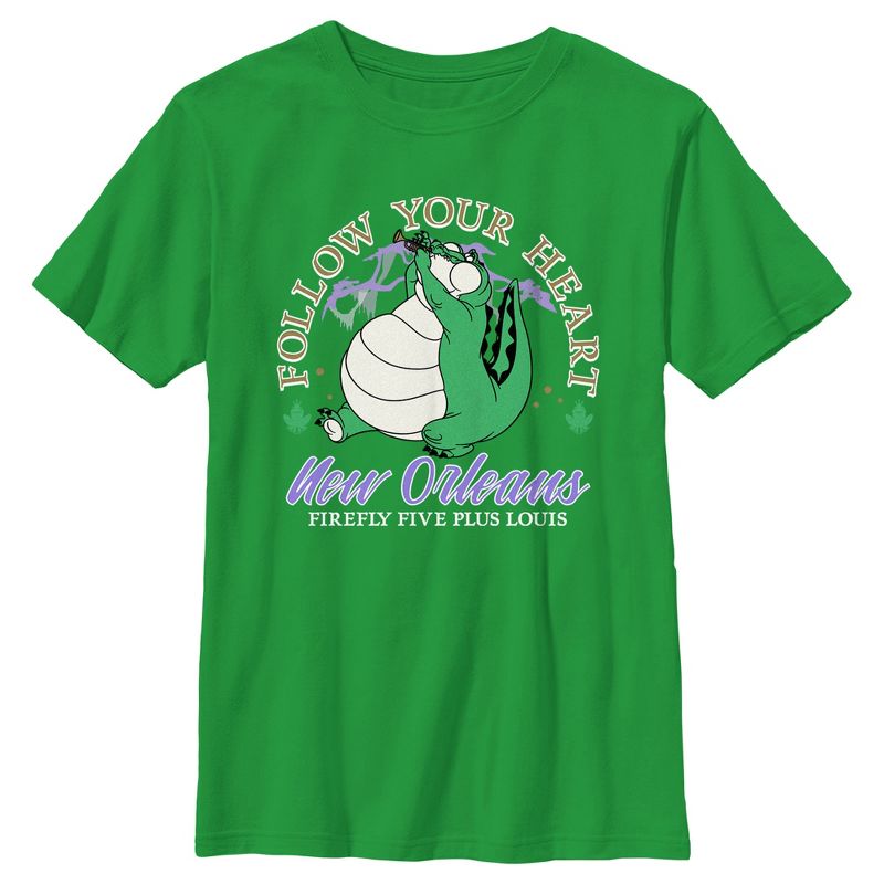 لن تشعر بمتعة تقبيل الضفدع إذا حصلت على تيشيرت ديزني الرسمي المرخص من ديزني "الأميرة والضفدع فايرفلاي فايف بلس لويس" للأولاد! يتميز هذا التيشيرت الرائع بعزف لويس الموهوب على البوق، مع عبارة "اتبع قلبك، نيو أورلينز فايرفلاي فايف بلس لويس" مطبوعة على الجهة الأمامية. احصل على ملابس "الأميرة والضفدع" المرخصة رسميًا لجميع أفراد العائلة، واحتفلوا بالربيع بأناقة هذا العام!