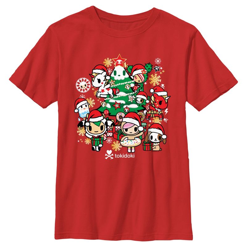 انغمس في عالم توكيدوكي الزاهي والملون مع ملابس جديدة مرخصة رسميًا، تحمل جميع شخصياتك اللطيفة المفضلة من العلامة التجارية الشهيرة والمتخصصة في أسلوب الحياة! يتميز هذا التيشيرت الجماعي للأولاد برسومات جماعية لشخصيات كاكتوس دوغ، ودونوتيلا، ودونوتينو، ولاتيه، وموزاريلا، ونويل، وساندي، وستيلينا، مع شجرة عيد الميلاد على الجهة الأمامية. اقتنِ أحد هذه التيشيرتات الجديدة في موسم الأعياد هذا، وأضف لمسة من سحر توكيدوكي إلى خزانة ملابسك!