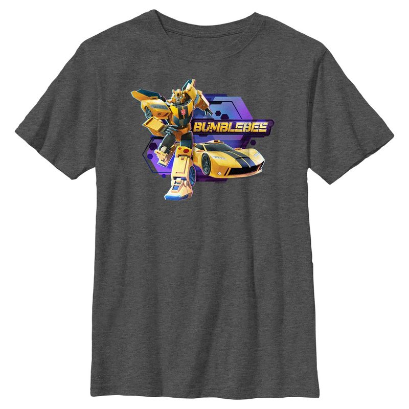 - استمتع بالراحة والأناقة في نفس الوقت مع تصميم هذا القميص الجرافيكي المرخص رسميًا للأولاد من Transformers: EarthSpark.