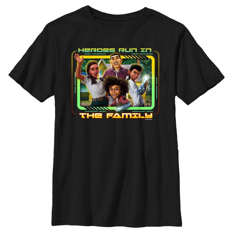 - أظهر مهاراتك مع هذا التي شيرت الجديد الأنيق للأولاد والذي يعد مثاليًا لكل المناسبات، والذي يظهر دوت وأليكس وروبي ومو مالتو أمام منزلهم محاطين بنص "الأبطال يركضون في العائلة"!