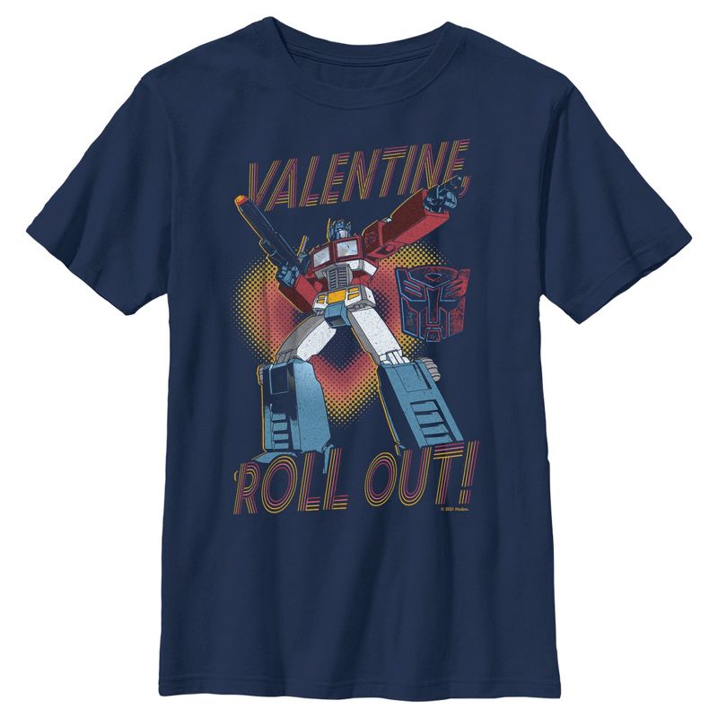 استمتع بأجواء عيد الحب مع هذا التيشيرت المرخص رسميًا للأولاد من هاسبرو ترانسفورمرز فالنتاين رول آوت باللون الأزرق الداكن! يتميز هذا التيشيرت بشخصية أوبتيموس برايم الشهيرة، مع لمسة من عبارته الشهيرة "فالنتاين، رول آوت!" بأحرف كلاسيكية كبيرة. ستجذب بالتأكيد جميع عشاق ترانسفورمرز، وربما تحصل على هدية عيد حب جميلة! تألق بأناقة هذا الموسم مع هذا التيشيرت الجديد ذي الرسومات الجرافيكية!