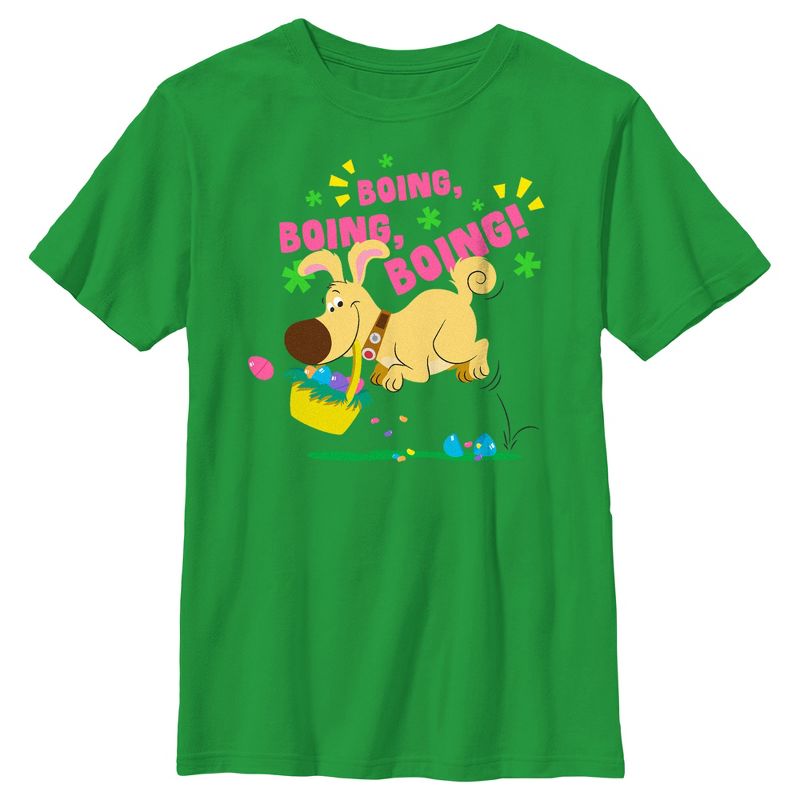 - احصل على سلة وانطلق في رحلة بحث عن تيشيرت عيد الفصح للأولاد! يُظهر دوغ وهو يقفز بسعادة مع سلة عيد الفصح المليئة بالبيض الملون، وعبارة "بوينغ، بوينغ، بوينغ!" مكتوبة بخط وردي على الجهة الأمامية.