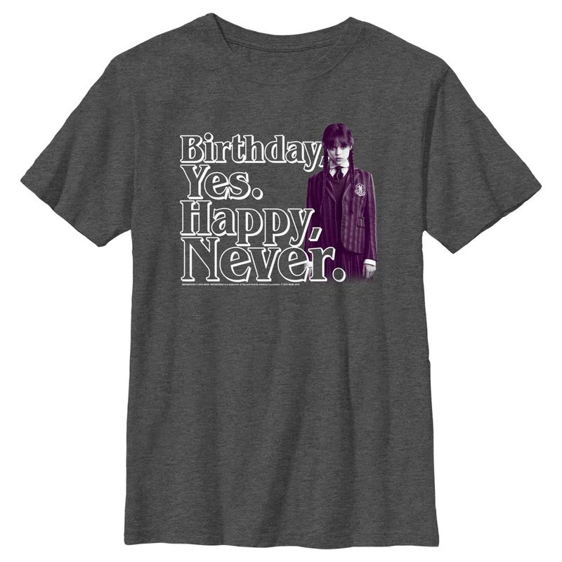 - تباهَ بأبهى حلة مع هذا التيشيرت الأنيق الجديد المخصص لأعياد الميلاد للأولاد، وهو مثالي ليومكم المميز! يحمل صورة الأربعاء الجامدة، إلى جانب العبارة الطريفة: "عيد ميلاد، نعم. سعيد، أبدًا".