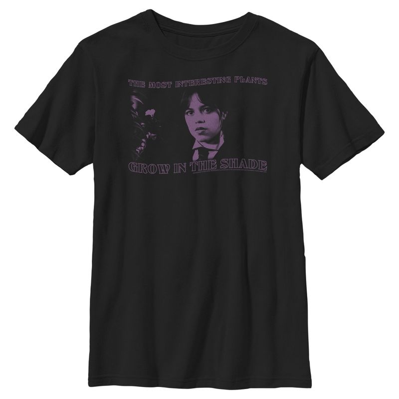 - تباهَ بملابسك اليومية الأنيقة مع هذا التيشيرت الجديد للأولاد، مثالي لكل مناسبة! يحمل صورة وينزداي آدامز، محاطًا بنص يقول "أكثر النباتات إثارة للاهتمام تنمو في الظل".
