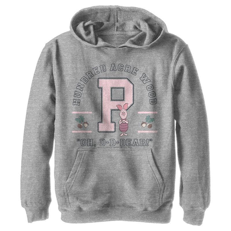 تجوّل مع كريستوفر روبن في غابة المئة فدان مرتديًا هودي ديزني ويني ذا بوه الجامعي المرخص رسميًا! يتميز هذا التصميم الرائع للأولاد ببيجلت صغير لطيف، أسفله عبارة "يا إلهي!" مطبوعة بأسلوب جامعي. ستحب هذا الهودي تقريبًا بقدر حب ويني ذا بوه لعسله!