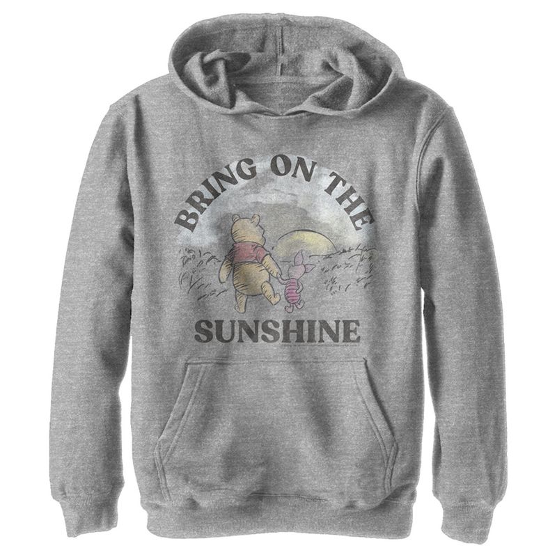 انطلق في نزهة مع كريستوفر روبن عبر غابة المئة فدان مرتديًا هذا القميص الرسمي من ديزني بنمط ويني ذا بوه! يتميز هذا القميص ذو القلنسوة بتصميم عتيق وباهت، وهو مزين برسومات ويني ذا بوه وبيجليت، وهما يسيران نحو الأفق، مع عبارة "أشرق الشمس" مطبوعة على واجهته الأمامية. ستحب هذا القميص تقريبًا بقدر حب ويني ذا بوه لعسله.