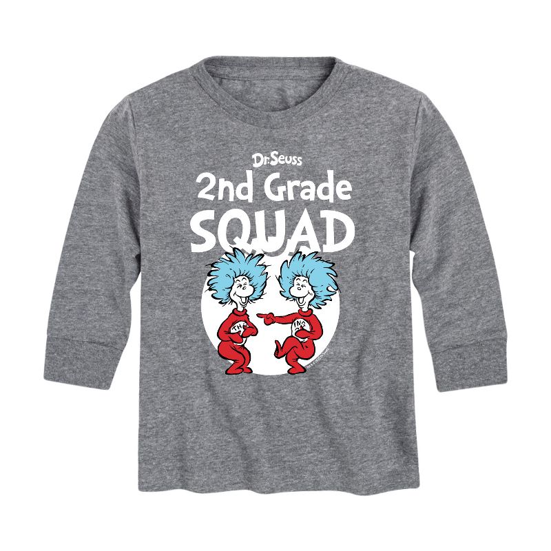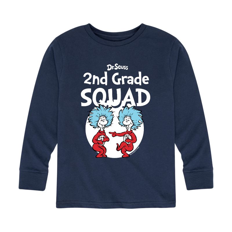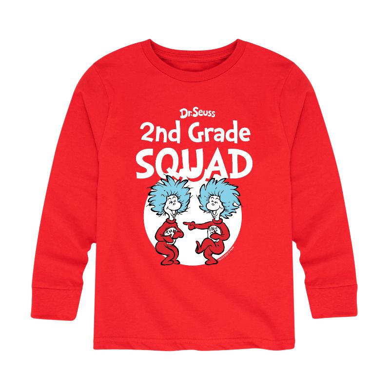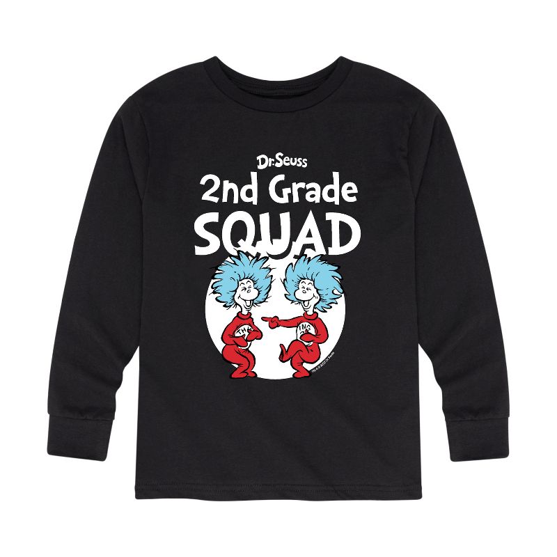 تيشيرت جرافيكي بأكمام طويلة للشباب من فرقة الصف الثاني - مجموعتنا من الملابس الجرافيكية التي تحمل شخصيات دكتور سوس المرخصة رسميًا، تُضفي لمسةً من غرابة وسحر سوسفيل على خزانة ملابسك. من القطة ذات القبعة المشاغبة إلى غرينش ذي الرائحة الكريهة، يُبرز كل تصميم شخصيات ومشاهد شهيرة من قصص دكتور سوس الخالدة.