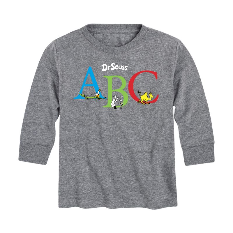 دكتور سوس - شخصيات كتب ABC - تيشيرت شبابي بأكمام طويلة برسومات جرافيكية - مجموعتنا من الملابس الجرافيكية التي تحمل شخصيات دكتور سوس المرخصة رسميًا، تُضفي لمسةً من غرابة وروعة سوسفيل على خزانة ملابسك. من القطة ذات القبعة المشاغبة إلى غرينش ذي الرائحة الكريهة، يُبرز كل تصميم شخصيات ومشاهد شهيرة من قصص دكتور سوس الخالدة.