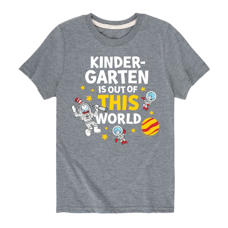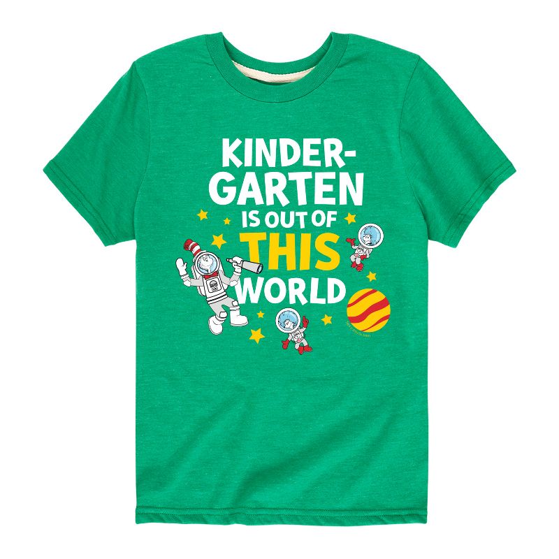 تيشيرت جرافيكي بأكمام قصيرة للصغار من دكتور سوس - روضة أطفال "من خارج هذا العالم" - مجموعتنا من الملابس الجرافيكية التي تحمل شخصيات دكتور سوس المرخصة رسميًا، تُضفي لمسةً من غرابة وسحر سوسفيل على خزانة ملابسك. من القطة ذات القبعة المشاغبة إلى غرينش ذي الرائحة الكريهة، يُبرز كل تصميم شخصيات ومشاهد شهيرة من قصص دكتور سوس الخالدة.
