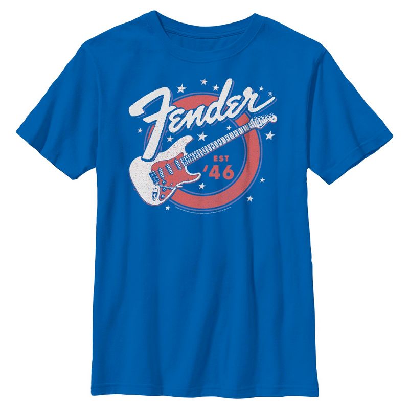 - أظهر روحك الوطنية بأناقة وراحة مع هذا التصميم الجريء للتي شيرت الجرافيكي المستوحى من الطراز الأمريكي للأولاد من Fender.
