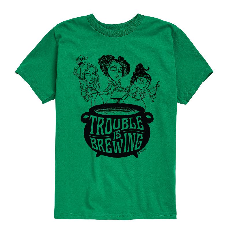 Hocus Pocus - Trouble is Brewing - تي شيرت جرافيكي بأكمام قصيرة للشباب - أضف لمسة من الأناقة إلى أسلوبك مع ملابس Hocus Pocus الجرافيكية، التي تتميز بأخوات Sanderson ولحظات سحرية من فيلم الهالوين الكلاسيكي المفضل لدى الجميع.