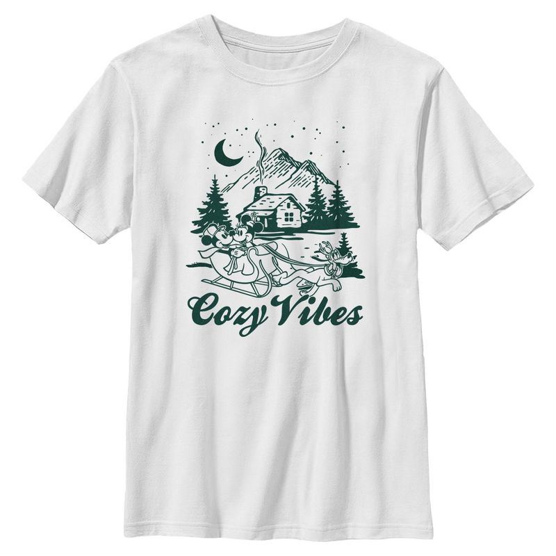 - دلل نفسك بدفء وسحر الشتاء مع هذا التيشيرت الجديد والأنيق للأولاد! يُظهر ميكي وميني مرتديين ملابس دافئة، يركبان زلاجة، يجرها بلوتو، مع كوخ جبلي متوهج في الخلفية، وعبارة "أجواء دافئة" مطبوعة أسفله.