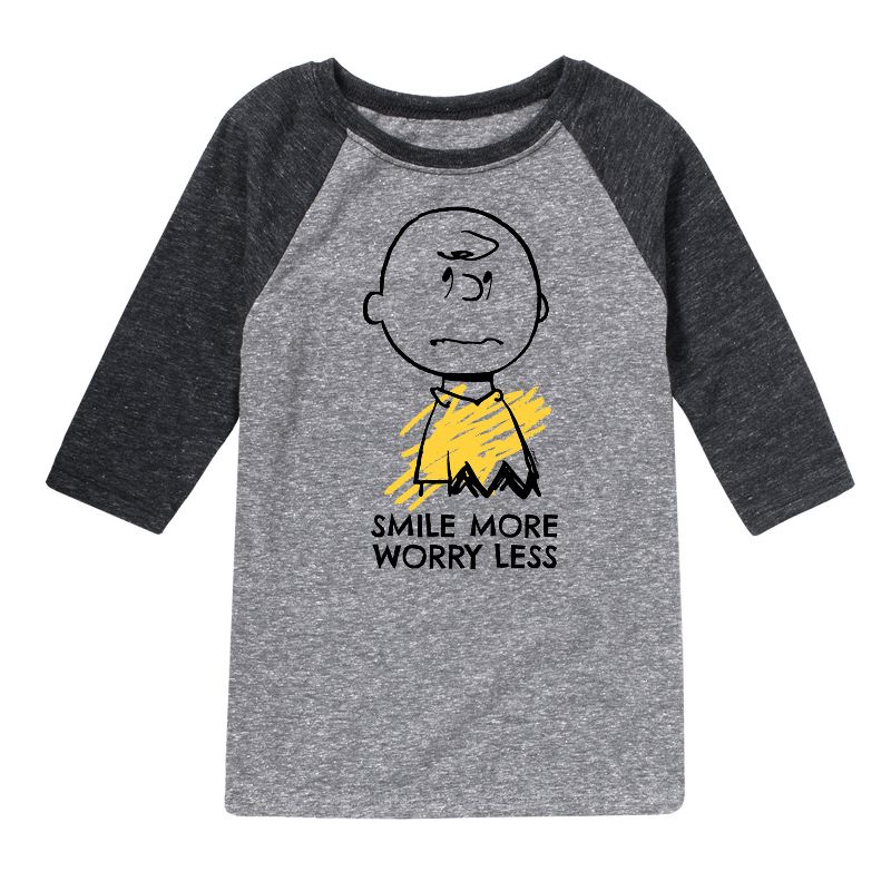 بيناتس - ابتسم أكثر، قلق أقل - تيشيرت راجلان للشباب - من أشهر القصص المصورة في التاريخ، تأتي ملابس بيناتس المرخصة رسميًا لعشاقها في كل مكان. أظهر حبك لتشارلي براون، وسنوبي، وودستوك، ولوسي، ولينوس، وبيغبن، وجميع أفراد العصابة. جميع الحقوق محفوظة لبيناتس.