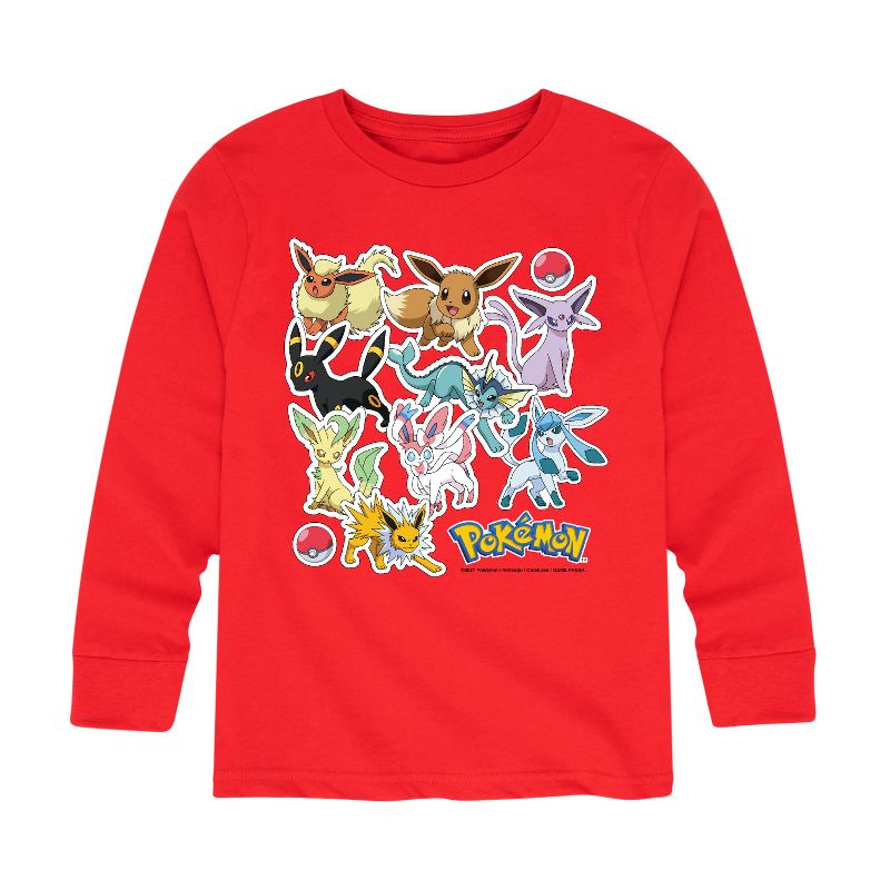 بوكيمون - ملصقات إيفي إيفولوشن - تيشيرت شبابي بأكمام طويلة برسومات جرافيكية - احتفل بجوهر بوكيمون مع ملابس مرخصة رسميًا تتميز بتصاميم فريدة من تصميم هايبرد أباريل. كل قطعة تُجسّد شخصيات محبوبة، وصورًا أيقونية، ولحظات لا تُنسى، مما يُتيح لعشاق بوكيمون طريقة فريدة للتعبير عن شغفهم.