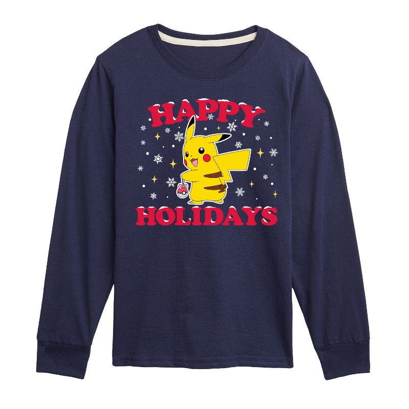 بوكيمون - أعياد سعيدة - تيشيرت شبابي بأكمام طويلة برسومات جرافيكية - احتفل بجوهر بوكيمون مع ملابس مرخصة رسميًا تتميز بتصاميم فريدة من تصميم هايبرد أباريل. كل قطعة تُجسّد شخصيات محبوبة، وصورًا أيقونية، ولحظات لا تُنسى، مما يُتيح لعشاق بوكيمون طريقة فريدة للتعبير عن شغفهم.