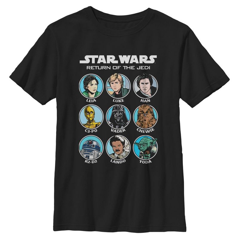 - احتفل بملحمتك المفضلة بهذا التصميم الفريد للتي شيرت الجرافيكي للأولاد من Star Wars: Return of the Jedi!