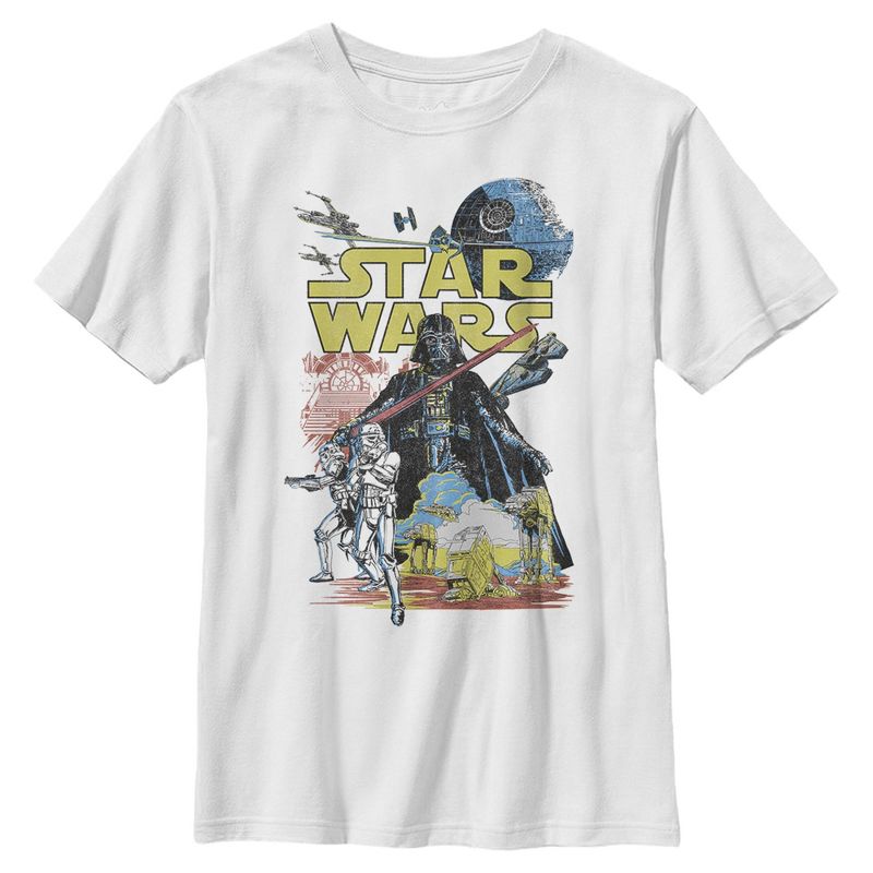 - أطلق العنان لقوة ذوقك في الموضة مع هذا التصميم الفريد للتي شيرت الجرافيكي للأولاد من Star Wars: A New Hope!
