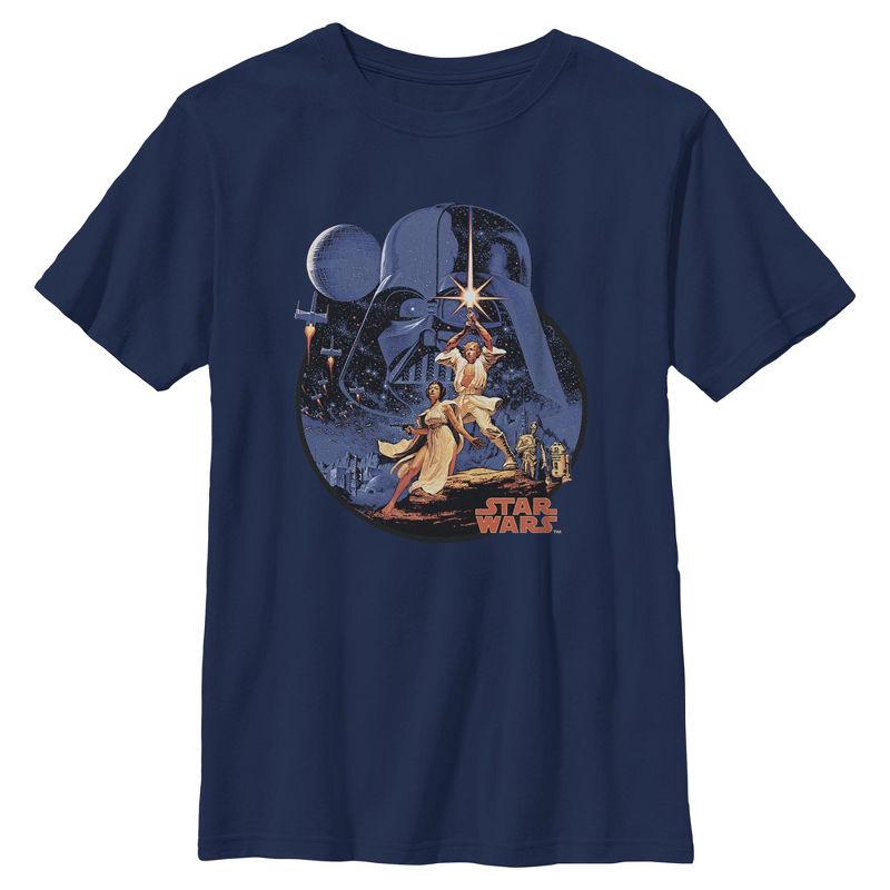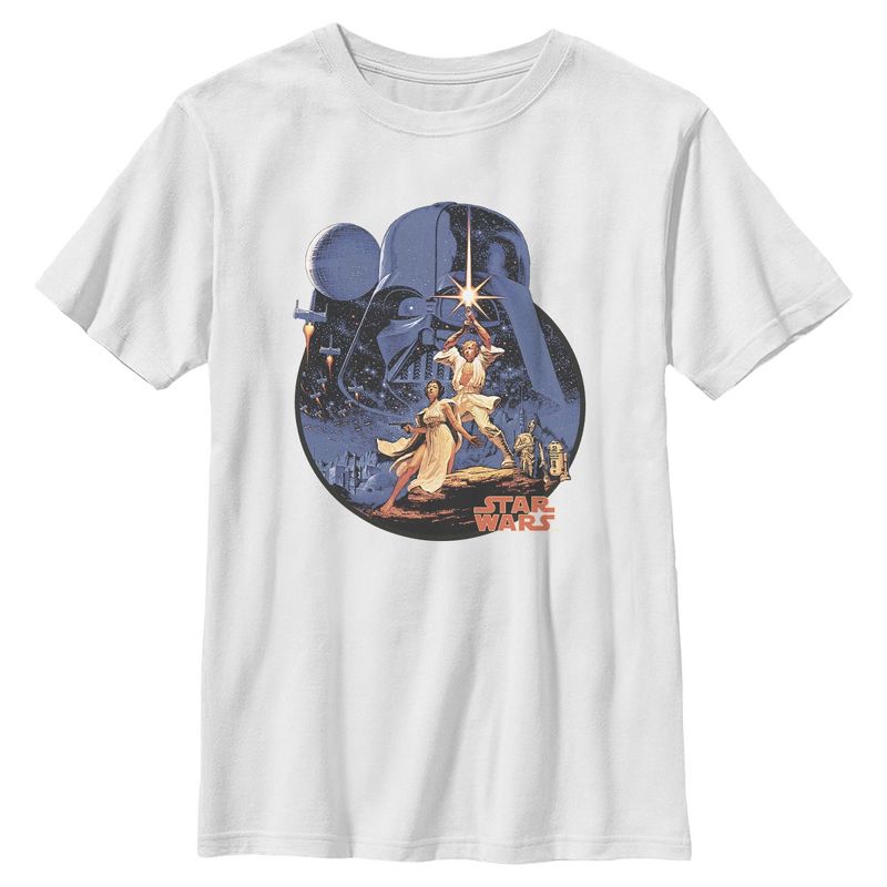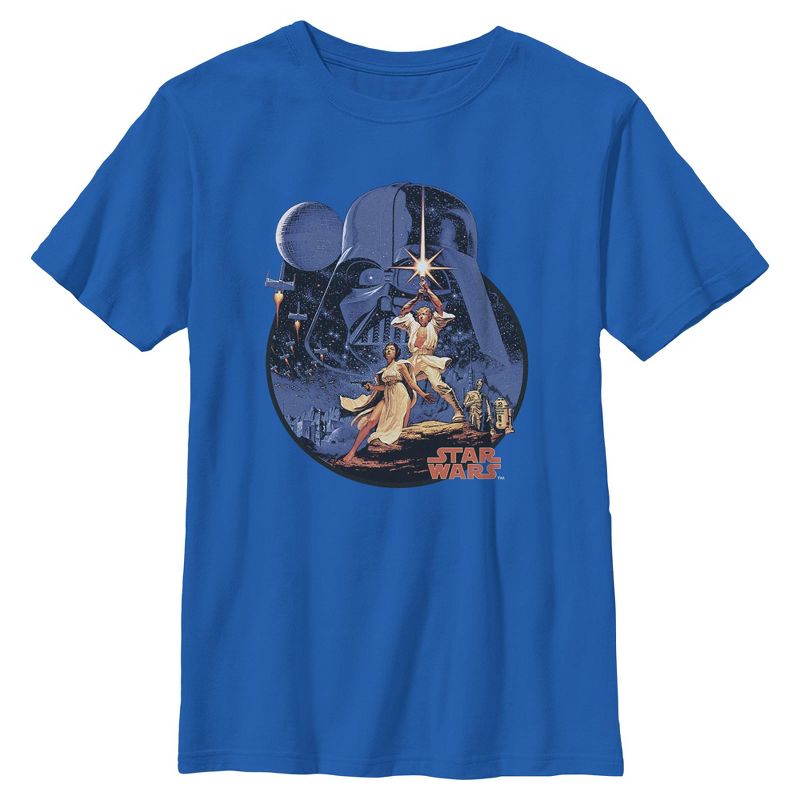 - أطلق العنان لقوة ذوقك في الموضة مع هذا التصميم الفريد للتي شيرت الجرافيكي للأولاد من Star Wars: A New Hope!