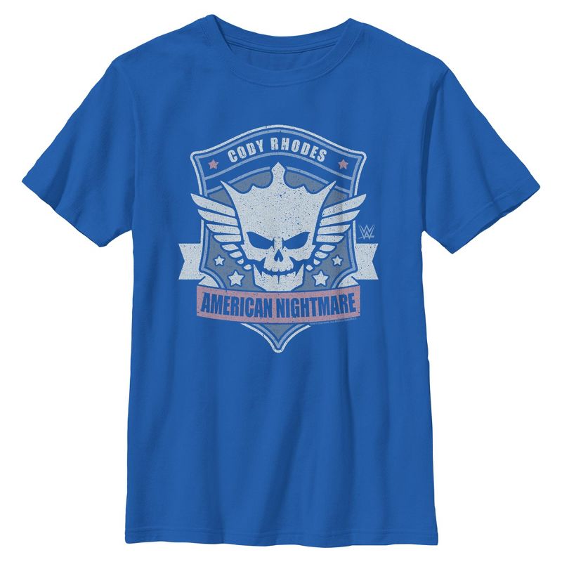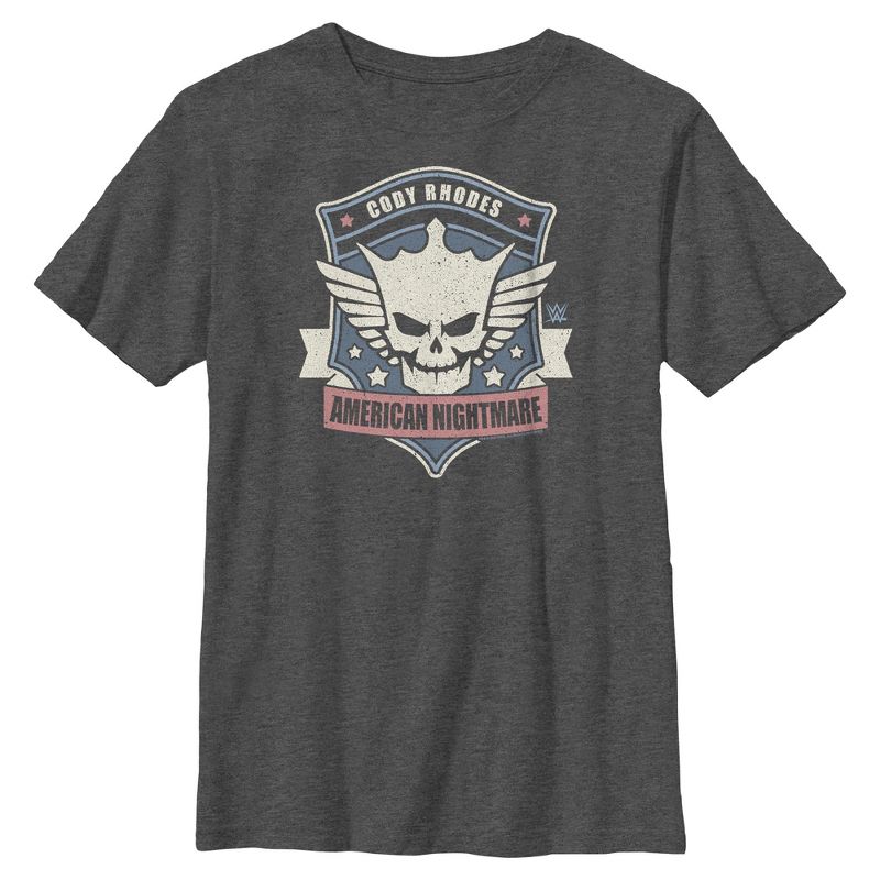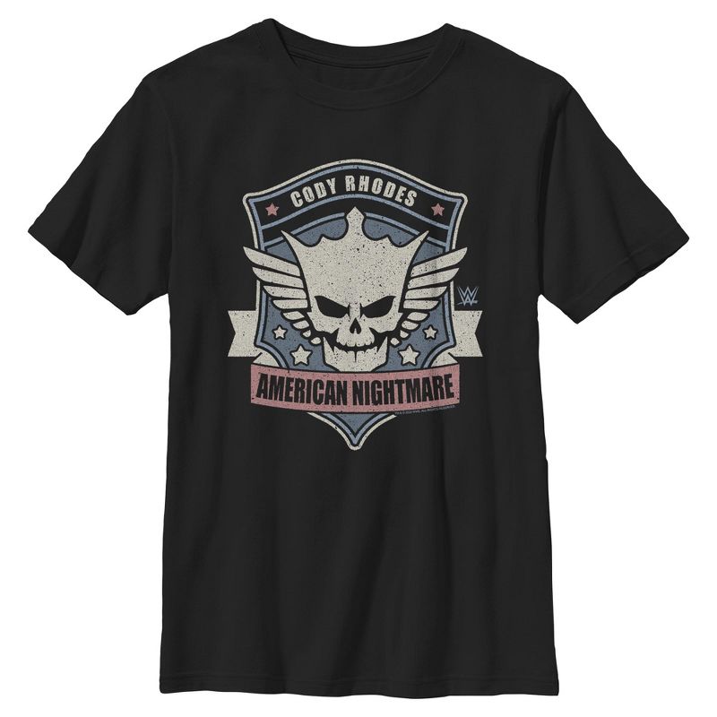 - انطلق بثقة وحماس مع هذا التيشيرت الجديد للأولاد، مثالي لجميع المناسبات! يحمل شارة كودي رودس، مع رمز الجمجمة الشهير والنجوم، وعنوان "الكابوس الأمريكي" مطبوعًا على الجهة الأمامية.