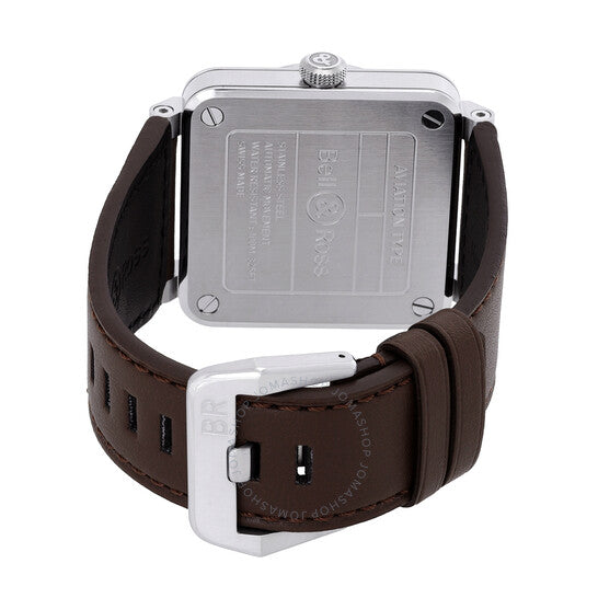 علبة فضية اللون من الفولاذ المقاوم للصدأ مع سوار بني من جلد العجل. إطار ثابت فضي اللون من الفولاذ المقاوم للصدأ. ميناء نحاسي بعقارب زرقاء وعلامات ساعات بأرقام عربية. تظهر علامة الأرقام العربية عند الساعة 3، 6، 9، و12. علامات الدقائق حول الحافة الخارجية. نوع الميناء: تناظري. عقارب وعلامات مضيئة. عرض التاريخ بين الساعة 4 و5. حركة أوتوماتيكية من بيل آند روس، عيار BR-CAL.302، مبنية على سيليتا SW300-1، تحتوي على 25 جوهرة، تنبض بمعدل 28800 ذبذبة في الساعة، ولديها احتياطي طاقة لمدة 38 ساعة تقريبًا. زجاج ياقوت مقاوم للخدش. غطاء خلفي صلب. شكل العلبة مربع، مقاسها: 41 مم، سمكها: 9.65 مم. مشبك تانغ. مقاومة للماء حتى عمق 100 متر / 330 قدمًا. الوظائف: التاريخ، الساعة، الدقائق، الثواني. سلسلة Br 03. ساعة رياضية. علامة الساعة: صناعة سويسرية. ساعة بيل آند روس BR 03 أوتوماتيكية للرجال بمينا نحاسي BR03A-GB-ST/SCA.