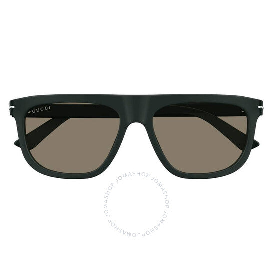 نظارات شمسية من غوتشي. رقم السلسلة: GG1726S. رمز اللون: 004. الشكل: حاجب. عرض العدسة: 56 مم. جسر العدسة: 17 مم. طول الذراع: 145 مم. حماية 100% من الأشعة فوق البنفسجية. غير مستقطبة. مادة الإطار: أسيتات معاد تدويره. لون الإطار: أخضر لامع. نوع العدسات: بني. نمط الحافة: حافة كاملة. رمز UPC/EAN: 889652498324. نظارات شمسية غوتشي بنية للرجال بتصميم حاجب GG1726S 004 56.