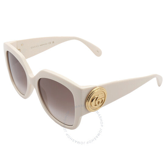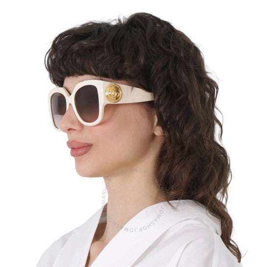 نظارات شمسية من غوتشي. رقم السلسلة: GG1407S. رمز اللون: 004. الشكل: فراشة. عرض العدسة: 54 مم. جسر العدسة: 19 مم. طول الذراع: 140 مم. حماية 100% من الأشعة فوق البنفسجية. غير مستقطبة. مادة الإطار: أسيتات معاد تدويره. لون الإطار: عاجي. نوع العدسات: بني. نمط الحافة: حافة كاملة. رمز UPC/EAN: 889652437873. نظارات شمسية غوتشي بنية نسائية بتصميم فراشة GG1407S 004 54.