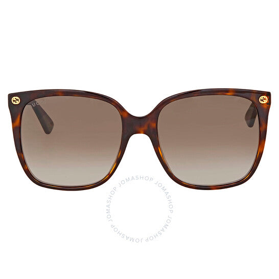 نظارات شمسية من غوتشي. رقم السلسلة: GG0022S. رمز اللون: 003. الشكل: عين القطة. عرض العدسة: 57 مم. جسر العدسة: 18 مم. طول الذراع: 140 مم. حماية 100% من الأشعة فوق البنفسجية. غير مستقطبة. مادة الإطار: أسيتات. لون الإطار: هافانا داكن. نوع العدسات: بني. نمط الحافة: حافة كاملة. رمز UPC/EAN: 889652048147. نظارات شمسية غوتشي بنية للنساء بتصميم عين القطة GG0022S 003 57.