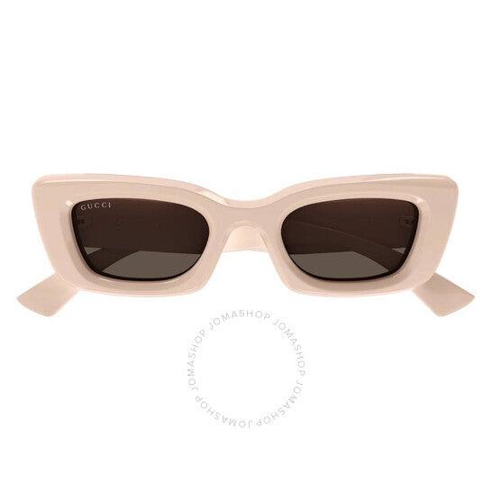 نظارات شمسية من غوتشي. رقم السلسلة: GG1827S. رمز اللون: 005. الشكل: عين القطة. عرض العدسة: 49 مم. جسر العدسة: 22 مم. طول الذراع: 145 مم. حماية 100% من الأشعة فوق البنفسجية. غير مستقطبة. مادة الإطار: بلاستيك. لون الإطار: وردي عتيق. نوع العدسات: بني. نمط الحافة: حافة كاملة. رمز UPC/EAN: 889652527185. نظارات شمسية غوتشي بنية للنساء بتصميم عين القطة GG1827S 005 49.