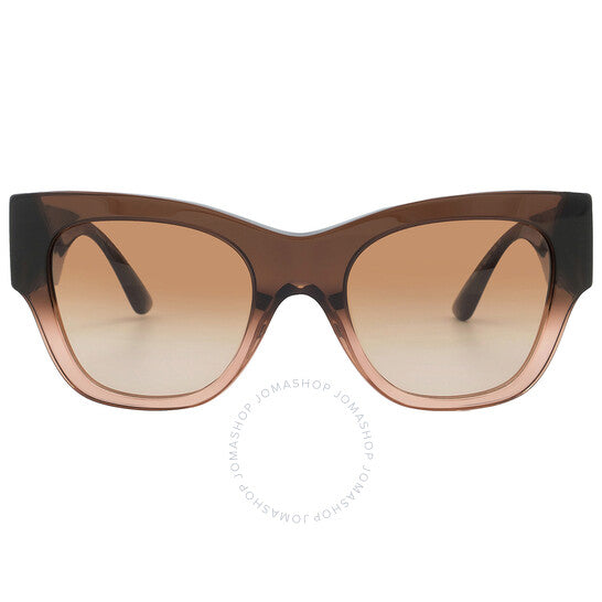 نظارات شمسية من فيرساتشي. رقم السلسلة: VE4415U. رمز اللون: 533213. الشكل: عين القطة. عرض العدسة: 52 مم. جسر العدسة: 21 مم. طول الذراع: 145 مم. حماية 100% من الأشعة فوق البنفسجية. غير مستقطبة. مادة الإطار: بلاستيك. لون الإطار: شفاف بني متدرج بيج. نوع العدسات: بني متدرج. نمط الحافة: حافة كاملة. رمز UPC/EAN: 8056597667371. نظارات شمسية نسائية من فيرساتشي، بنية متدرجة، عين القطة، VE4415U 533213 52.