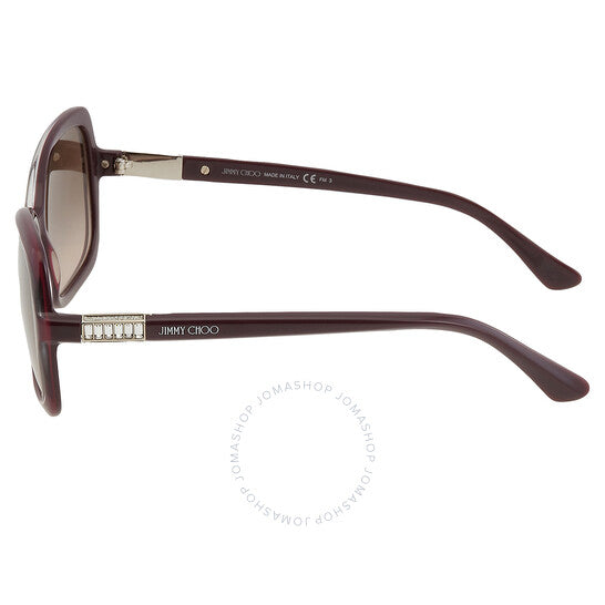 نظارات شمسية من جيمي تشو. رقم السلسلة: BETT/S. رمز اللون: 0LHF/HA. اللون: بني. الشكل: مربع. عرض العدسة: 56 مم. جسر العدسة: 17 مم. طول الذراع: 140 مم. حماية 100% من الأشعة فوق البنفسجية. مادة الإطار: بلاستيك. لون الإطار: عنابي. نوع العدسات: بني متدرج. نمط الحافة: حافة كاملة. رمز UPC/EAN: 716736291673. نظارات شمسية نسائية من جيمي تشو، بنية متدرجة، مربعة، BETT/S 0LHF/HA 56.