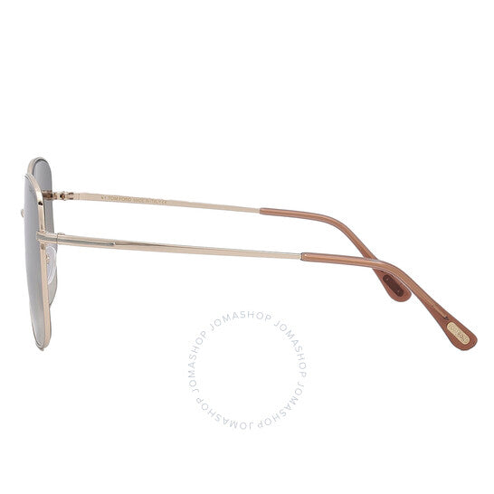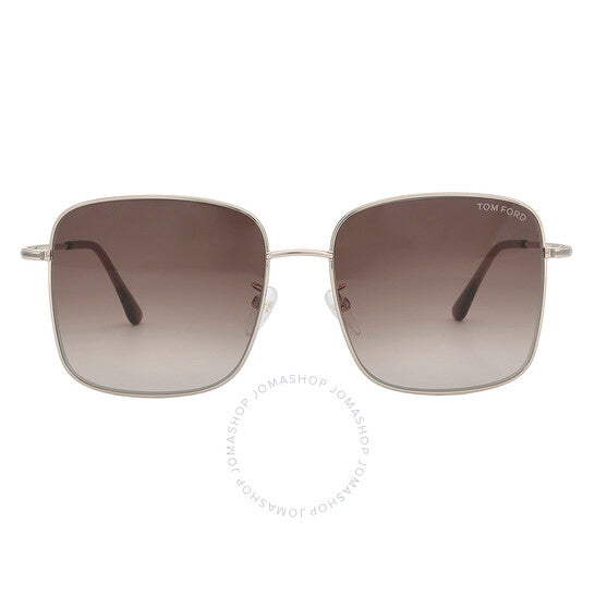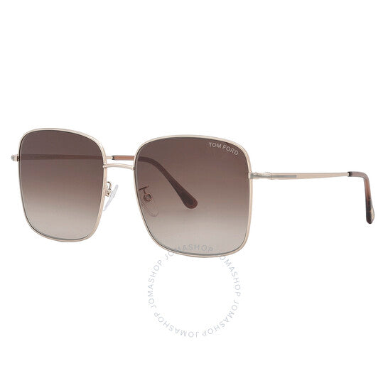 نظارات شمسية من توم فورد. رقم السلسلة: FT0894-K. رمز اللون: 28F. الشكل: مربع. عرض العدسة: 59 مم. جسر العدسة: 17 مم. طول الذراع: 145 مم. حماية 100% من الأشعة فوق البنفسجية. مادة الإطار: معدن. لون الإطار: ذهبي وردي لامع. نوع العدسات: بني متدرج. نمط الحافة: حافة كاملة. رمز UPC/EAN: 889214289605. نظارات شمسية نسائية مربعة من توم فورد، بنية متدرجة، FT0894-K، 28F، 59.