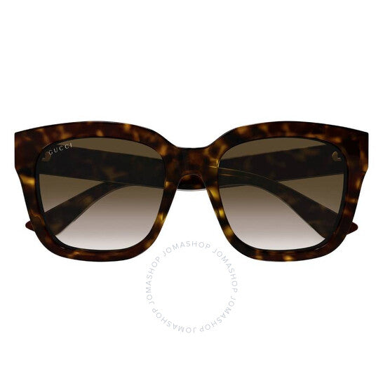 نظارات شمسية من غوتشي. رقم السلسلة: GG1338S. رمز اللون: 003. الشكل: مربع. عرض العدسة: 54 مم. جسر العدسة: 19 مم. طول الذراع: 140 مم. حماية 100% من الأشعة فوق البنفسجية. غير مستقطبة. مادة الإطار: أسيتات. لون الإطار: هافانا. نوع العدسات: بني متدرج. نمط الحافة: حافة كاملة. رمز UPC/EAN: 889652412900. نظارات شمسية غوتشي نسائية مربعة بنية متدرجة GG1338S 003 54.