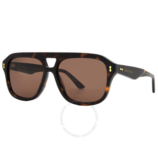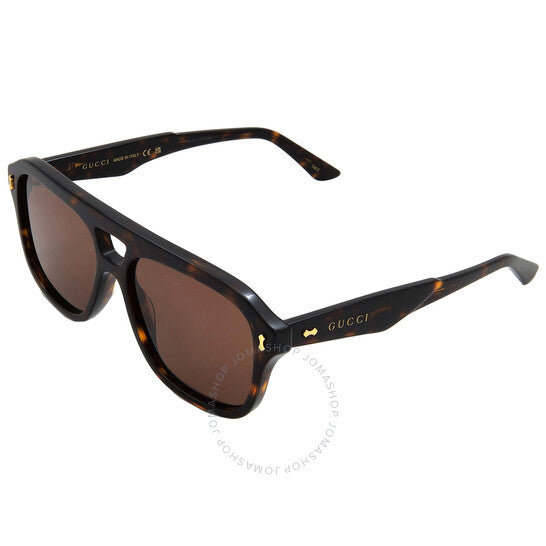 نظارات شمسية من غوتشي. رقم السلسلة: GG1263. رمز اللون: 006. الشكل: نافيجيتور. عرض العدسة: 57 مم. جسر العدسة: 16 مم. طول الذراع: 145 مم. حماية 100% من الأشعة فوق البنفسجية. غير مستقطبة. مادة الإطار: أسيتات معاد تدويره. لون الإطار: هافانا. نوع العدسات: بني. نمط الحافة: حافة كاملة. رمز UPC/EAN: 889652428581. نظارات شمسية غوتشي بنية للرجال نافيجيتور GG1263S 006 57.