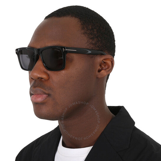 نظارات شمسية توم فورد. سلسلة باكلي. رقم السلسلة: FT0906-N. رمز اللون: 01A. الشكل: مربع. عرض العدسة: 56 مم. جسر العدسة: 17 مم. حماية 100% من الأشعة فوق البنفسجية. غير مستقطب. مادة الإطار: أسيتات. لون الإطار: أسود لامع. نوع العدسات: دخاني. نمط الحافة: حافة كاملة. رمز UPC/EAN: 889214294890. نظارات شمسية توم فورد باكلي الدخانية المربعة للرجال، FT0906-N 01A 56.
