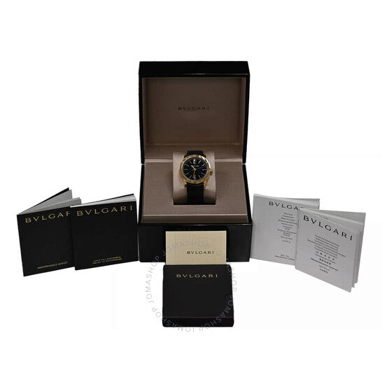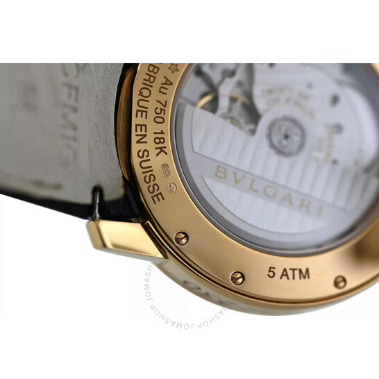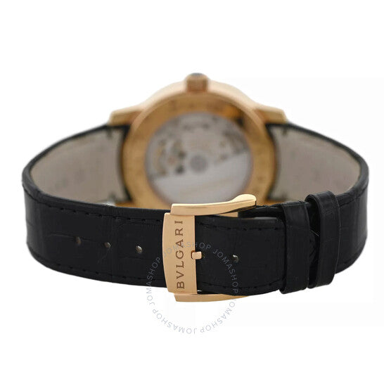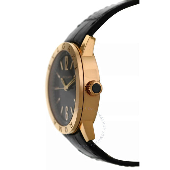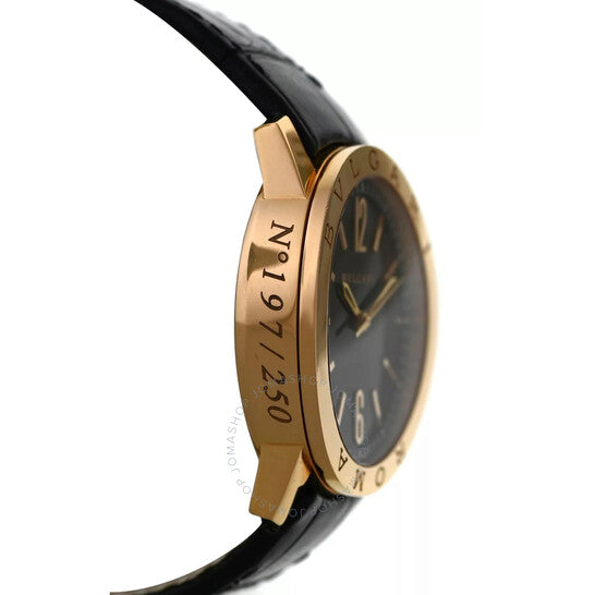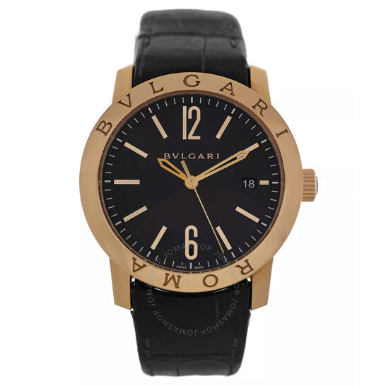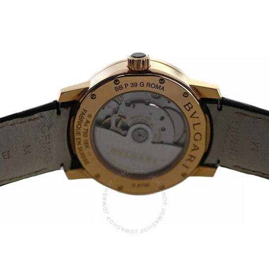 علبة من الذهب الوردي عيار 18 قيراطًا بلون الذهب الوردي، مع سوار جلدي أسود. إطار ثابت من الذهب الوردي عيار 18 قيراطًا بلون الذهب الوردي. ميناء أسود بعقارب بلون الذهب الوردي، وأرقام عربية وعلامات ساعات. علامات دقائق حول الحافة الخارجية. نوع الميناء: تناظري. عرض التاريخ عند موضع الساعة 3. حركة أوتوماتيكية. زجاج ياقوت مقاوم للخدش. غطاء خلفي شفاف. شكل العلبة دائري، مقاسها 39 مم. مقاومة للماء حتى عمق 50 مترًا / 165 قدمًا. الوظائف: التاريخ، الساعة، الدقائق، الثواني. سلسلة بولغاري روما. تصميم ساعة فاخرة. علامة الساعة: صناعة سويسرية. ساعة بولغاري بولغاري روما أوتوماتيكية للرجال بمينا أسود BBP39G 96.