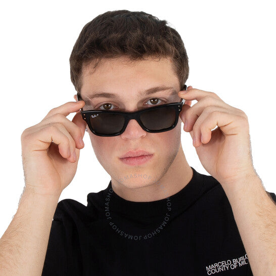 نظارات راي بان الشمسية. سلسلة بوربانك. رقم السلسلة: RB2283. رمز اللون: 901/58. الشكل: مستطيل. عرض العدسة: 52 مم. جسر العدسة: 20 مم. طول الذراع: 145 مم. حماية 100% من الأشعة فوق البنفسجية. مستقطبة. مادة الإطار: بلاستيك. لون الإطار: أسود. نوع العدسات: أخضر مستقطب. نمط الحافة: حافة كاملة. رمز UPC/EAN: 8056597556545. نظارات راي بان بوربانك الشمسية المستطيلة الخضراء المستقطبة للرجال RB2283 901/58 52.