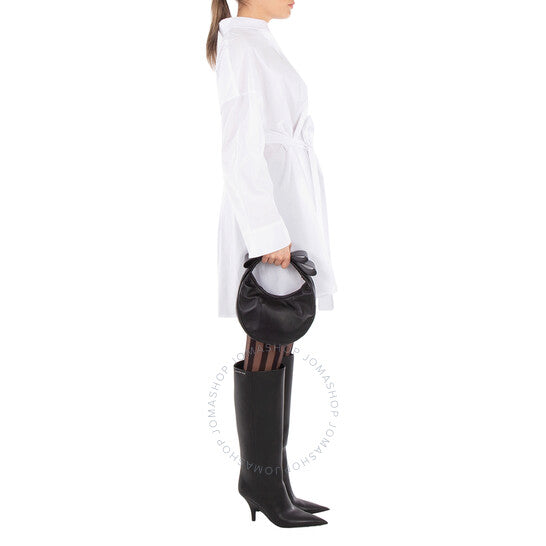 حقيبة ماش آند ماش النسائية الصغيرة. رمز المنتج: R24-B0065-NAP-BLK-BLACK. الرمز الشريطي: 2004005460119. اللون: أسود. حقيبة ماش ماش الجلدية الصغيرة مزينة بنقشة هلالية أنيقة. تصميمها الناعم والمُكشكش يُضفي لمسة من الأناقة العفوية، بينما يُعزز المقبض المزدوج المميز سحرها الأنثوي. 100% جلد نابا. صنع في إيطاليا.