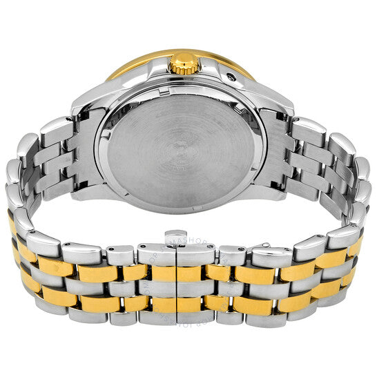علبة من الفولاذ المقاوم للصدأ مع سوار من الفولاذ المقاوم للصدأ ثنائي اللون (فضي وذهبي). إطار ذهبي ثابت. ميناء أزرق مع عقارب مضيئة ذهبية اللون وعلامات ساعات. علامات دقائق حول الحافة الخارجية. نوع الميناء: تناظري. عقارب مضيئة. أربعة أقراص فرعية متعددة الوظائف تعرض: يوم الأسبوع، التاريخ، الشهر، ومرحلة القمر. حركة Citizen عيار 8730 eco-drive. زجاج معدني مقاوم للخدش. تاج مدمج. غطاء خلفي صلب. شكل دائري. حجم الهيكل: 44 مم. سمك الهيكل: 13 مم. عرض السوار: 23 مم. مشبك قابل للطي بزر ضغط. مقاومة للماء حتى عمق 100 متر / 330 قدمًا. الوظائف: التاريخ، اليوم، الشهر، مرحلة القمر، الساعة، الدقيقة، الثانية. سلسلة Calendrier. تصميم ساعة كاجوال. ملصق الساعة: Japan Movt. ساعة Citizen Calendrier متعددة الوظائف زرقاء اللون ثنائية اللون للرجال BU0054-52L.