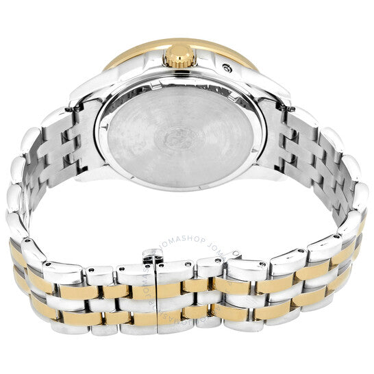 علبة من الفولاذ المقاوم للصدأ مع سوار من الفولاذ المقاوم للصدأ ثنائي اللون (فضي وذهبي). إطار ذهبي ثابت. ميناء فضي مع عقارب مضيئة ذهبية اللون وعلامات ساعات. علامات دقائق حول الحافة الخارجية. نوع الميناء: تناظري. عقارب مضيئة. أربعة أقراص فرعية متعددة الوظائف تعرض: يوم الأسبوع، التاريخ، الشهر، ومرحلة القمر. حركة Citizen عيار 8730 eco-drive. زجاج معدني مقاوم للخدش. تاج مدمج. غطاء خلفي صلب. شكل دائري. حجم العلبة: 44 مم. سمك العلبة: 13 مم. عرض السوار: 20 مم. مشبك قابل للطي بزر ضغط. مقاومة للماء حتى عمق 100 متر / 330 قدمًا. الوظائف: التاريخ، اليوم، الشهر، مرحلة القمر، الساعة، الدقيقة، الثانية. سلسلة Calendrier. تصميم ساعة كاجوال. ملصق الساعة: Japan Movt. ساعة Citizen Calendrier متعددة الوظائف بمينا فضي ثنائي اللون للرجال BU0056-57A.