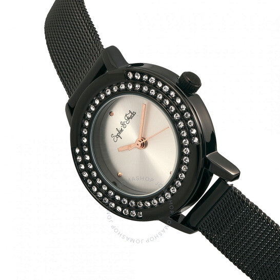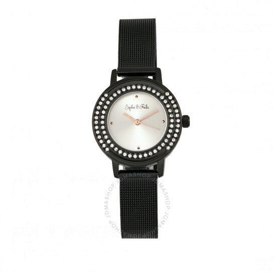 علبة من سبيكة معدنية سوداء مع سوار من سبيكة معدنية سوداء. إطار ثابت مرصع بالكريستال الأسود. ميناء فضي اللون مع عقارب ذهبية اللون وعلامات ساعات. نوع الميناء: تناظري. حركة كوارتز. كريستال معدني مقاوم للخدش. تاج قابل للسحب/الدفع. غطاء خلفي صلب. شكل دائري، مقاس العلبة: ٢٨ مم، سمكها: ٨ مم. عرض السوار: ١٢ مم. علبة مزودة بلسان ومشبك أمان. مقاومة للماء حتى عمق ٣٠ مترًا / ١٠٠ قدم. الوظائف: الساعات، الدقائق، الثواني. طراز ساعة رسمية. علامة الساعة: Japan Movt. رقم الموديل: SAFSF4103. ساعة صوفي وفريدا كامبريدج كريستال نسائية بمينا فضي SF4103.