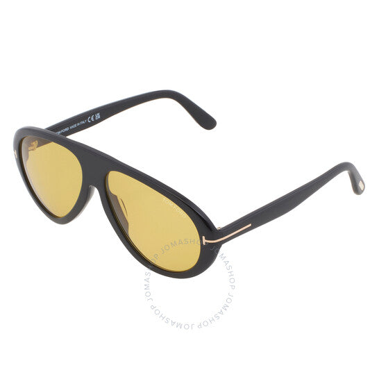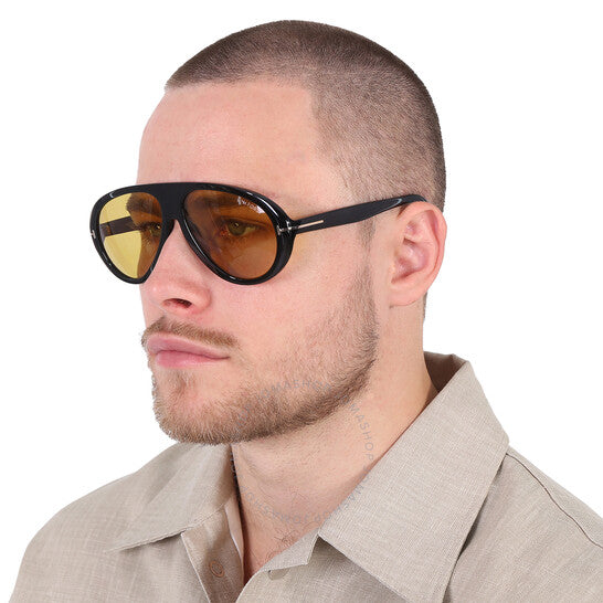 نظارات شمسية من توم فورد. سلسلة كاميلو. رقم السلسلة: FT0988. رمز اللون: 01E. الشكل: طيار. عرض العدسة: 60 مم. جسر العدسة: 15 مم. طول الذراع: 140 مم. حماية 100% من الأشعة فوق البنفسجية. غير مستقطب. مادة الإطار: أسيتات. لون الإطار: أسود. نوع العدسات: كهرماني. نمط الحافة: حافة كاملة. رمز UPC/EAN: 889214374325. نظارات شمسية توم فورد كاميلو كهرماني بايلوت للرجال، FT0988 01E 60.