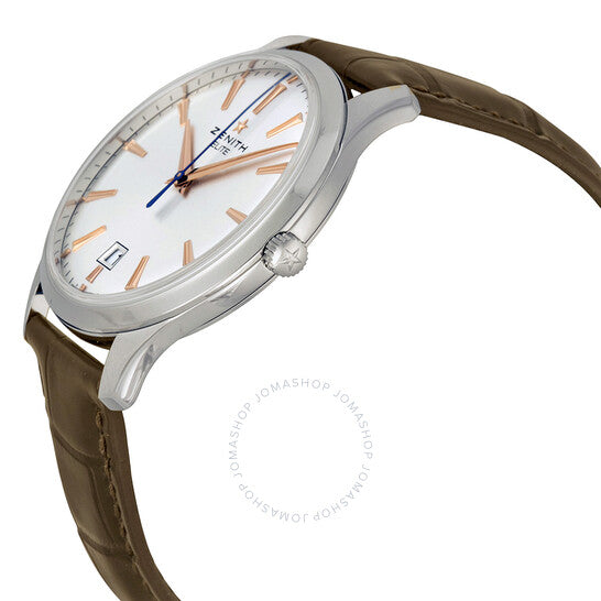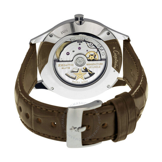علبة من الفولاذ المقاوم للصدأ مع سوار من جلد التمساح البني. إطار ثابت من الفولاذ المقاوم للصدأ. ميناء فضي بعقارب ذهبية اللون وعلامات ساعات. علامات دقائق حول الحافة الخارجية. نوع الميناء: تناظري. عرض التاريخ عند موضع الساعة السادسة. حركة أوتوماتيكية باحتياطي طاقة يصل إلى 50 ساعة. زجاج من الياقوت المقاوم للخدش. تاج قابل للسحب/الدفع. ظهر هيكلي. قطر العلبة: 40 مم. سمكها: 9 مم. شكلها دائري. عرض السوار: 19 مم. طول السوار: 8 بوصات. مشبك تانغ. مقاومة للماء حتى عمق 50 مترًا / 165 قدمًا. الوظائف: التاريخ، الساعة، الدقائق، الثواني. تصميم ساعة فاخرة. علامة الساعة: صناعة سويسرية. ساعة زينيث كابتن سنترال سكند أوتوماتيكية للرجال بمينا فضي، 03202067001C498.
