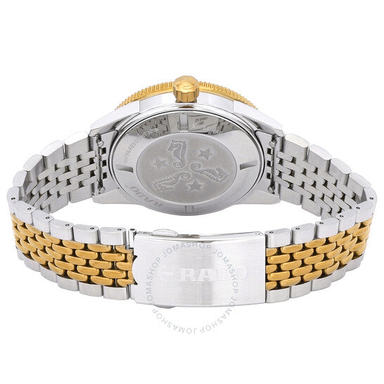 علبة من الفولاذ المقاوم للصدأ فضية اللون مع سوار من الفولاذ المقاوم للصدأ ثنائي اللون (فضي وذهبي مطلي بتقنية الترسيب الفيزيائي للبخار). إطار دوار أحادي الاتجاه من السيراميك الأسود عالي التقنية. ميناء أسود مع عقارب وعلامات ساعات ذهبية اللون. علامات دقائق حول الحافة الخارجية. نوع الميناء: تناظري. عقارب وعلامات مضيئة. عرض التاريخ عند موضع الساعة 3. حركة أوتوماتيكية من رادو كاليبر 03.763.835 مع احتياطي طاقة يصل إلى 80 ساعة. زجاج من الياقوت المقاوم للخدش. تاج لولبي. غطاء خلفي صلب. شكل العلبة دائري، مقاسها: 41 مم، سمكها: 12.3 مم. مشبك قابل للطي بزر ضغط. مقاومة للماء حتى عمق 300 متر / 1000 قدم. الوظائف: التاريخ، الساعة، الدقيقة، الثانية. سلسلة كابتن كوك. طراز الساعة الرياضية. علامة الساعة: صناعة سويسرية. تنوعات المنتج: 01.763.6137.3.015. ساعة رادو كابتن كوك أوتوماتيكية للرجال بمينا أسود R32137153.
